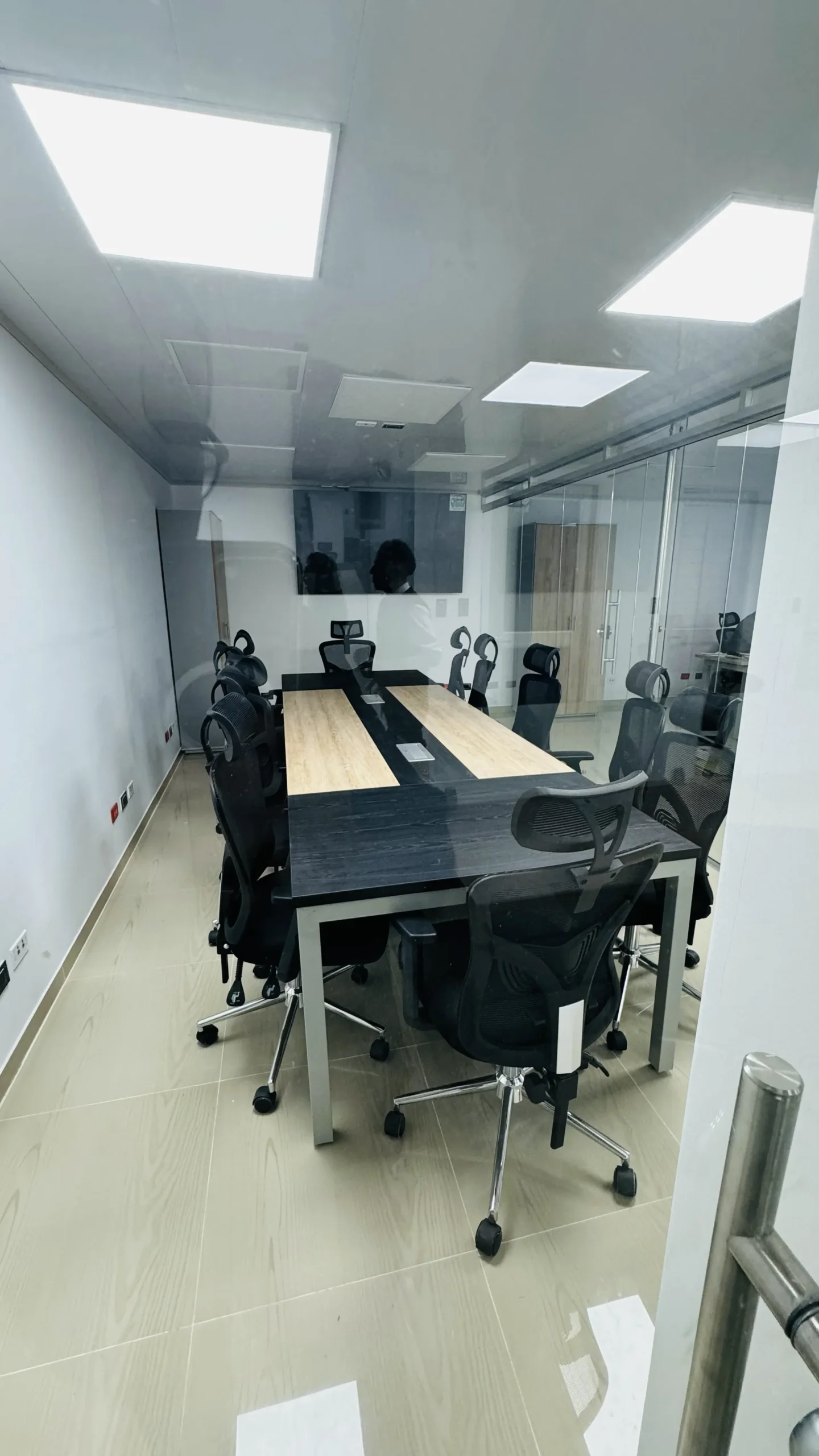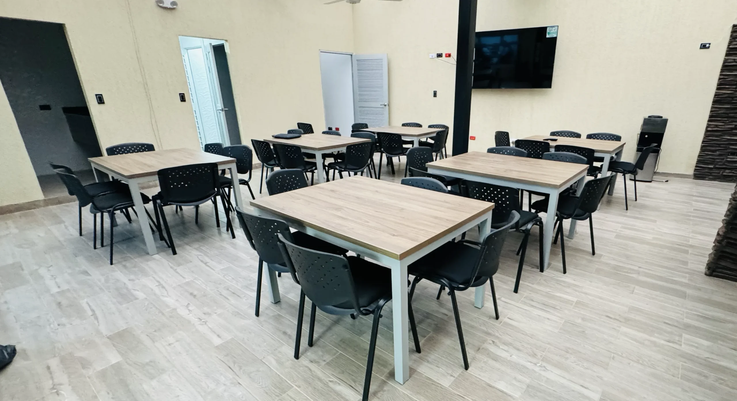 Diseñamos una sala de juntas moderna y funcional, y un comedor amplio para que el equipo pueda compartir y almorzar cómodamente. Materiales durables, acústica cuidada y mobiliario ergonómico elevan la experiencia diaria.